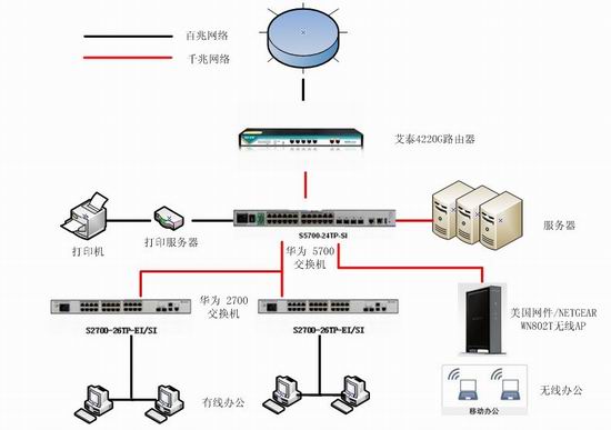 在信息化的初期,企业已经在使用一些信息化设施,如台式机、便携式电脑、打印机、服务器、传真机等,以提高工作效率。一些业务系统,如办公自动化、财务系统等已经得到实际应用。在这个阶段,企业信息资源不能充分、快捷的共享,企业希望以较低的投入建成经济实用的网络平台,以满足信息资源的共享,数据的快速汇总和决策,低成本开展各项业务应用。同时,通过互联网访问海量的Internet资源,并满足未来业务发展需要。