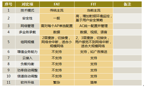 下面将胖AP及瘦AP架构作对比分析,用户可根据实际情况选择合适的方案:
