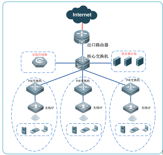 以因特网接入为总体目标,将公司办公楼各楼层实现WIFI全覆盖。保证员工可以在办公区域内自由移动办公,提升工作效率。