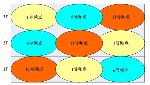 在使用2.4GHz频点时,为保证信道之间不相互干扰,要求两个信道之间间隔不低于25MHz。在一个覆盖区内,最多可以提供3个不重叠的频点同时工作,通常采用1、6、11三个频点。WLAN频率规划需综合考虑建筑结构、穿透损耗以及布线系统等具体情况进行。